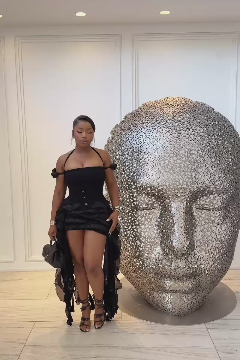 Step into main-character energy with the La Vie En Corset Set — a three-piece ensemble that marries drama with elegance. Featuring a structured corset to cinch and sculpt, layered ruffle shorts for movement and comfort, and a cascading asymmetrical dress overlay that drapes like wearable art. Designed for the girl who commands the room, this set is equal parts sultry and ethereal. Pair with strappy heels and statement jewelry to turn sidewalks into runways.